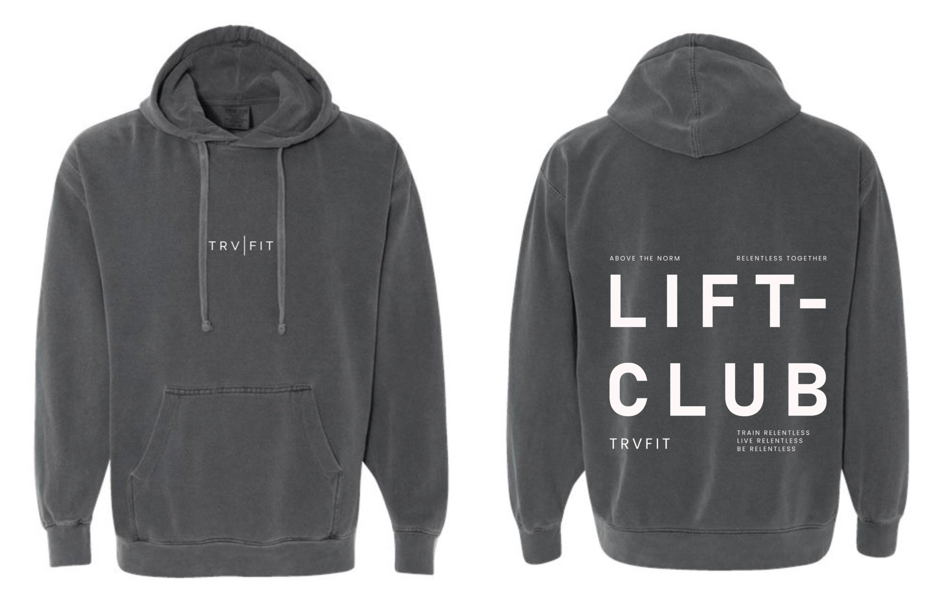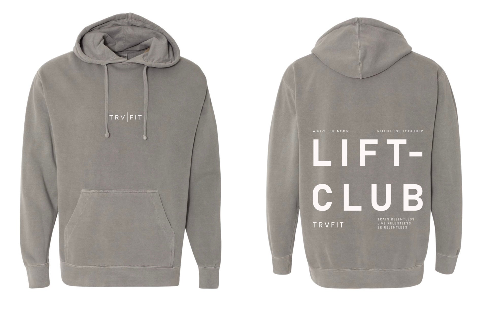 A unisex garment-dyed hoodie from the Lift Club collection, designed for comfort and everyday wear. Features a relaxed fit and soft feel. Available in Pepper and Gray, sizes S–XXXL.